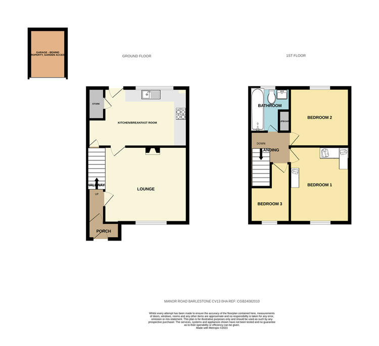 Lawned garden to the front. Enclosed rear garden with further lawn. Parking and single garage to the rear.