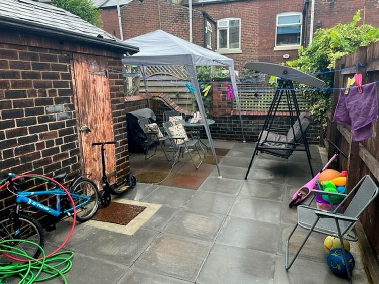 Small gardens and yard space to the rear.
