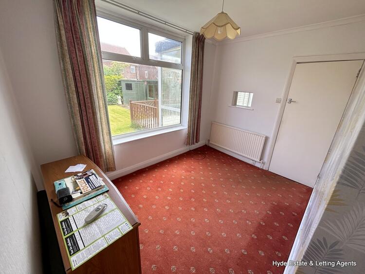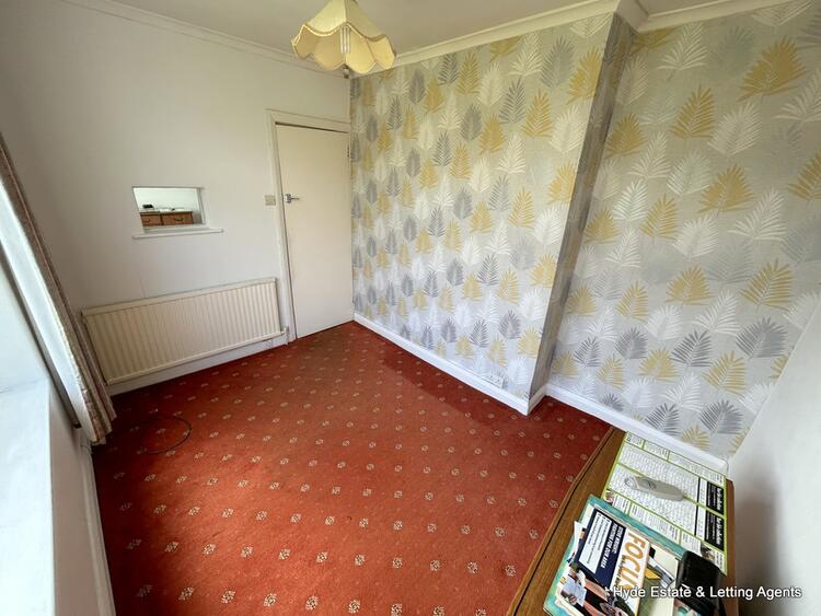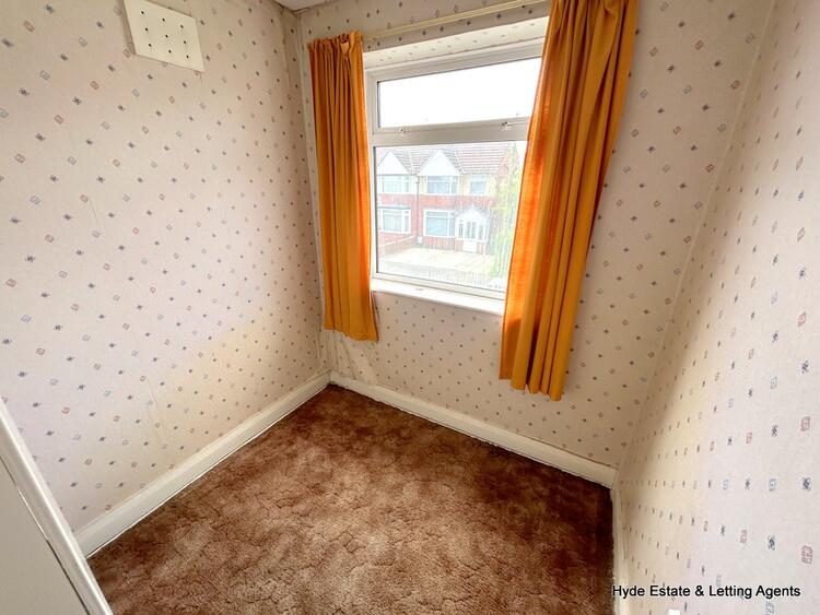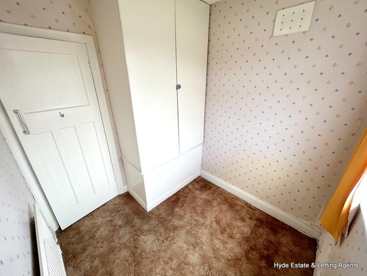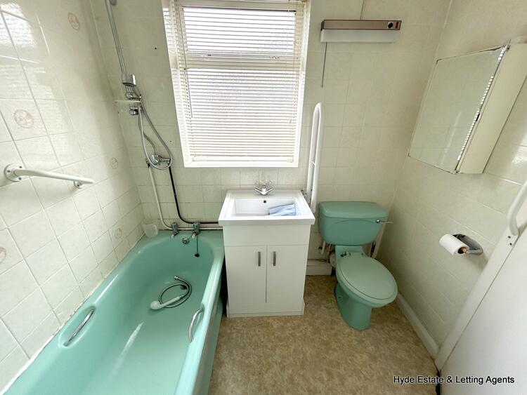First floor - comprising of three bedrooms bay fronted double room, rear facing second room which is also a double. The third bedroom is a front facing single room and has storage built in above the bulkhead of the staircase. The family bathroom is fitted with a coloured suite of a WC and bath with overhead shower which predates the modern vanity unit. Tiled walls and frosted window.