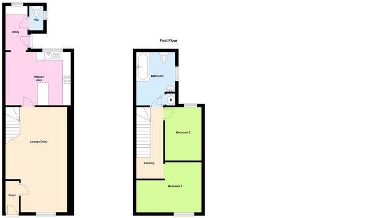 The accommodation comprises entrance porch, open plan lounge/dining room, fitted kitchen/breakfast room with access to the rear garden, utility area and cloakroom. To the upstairs are 2 bedrooms and bathroom. Outside the rear enclosed garden has patio area. The property does require some cosmetic work throughout and further benefits from gas central heating.