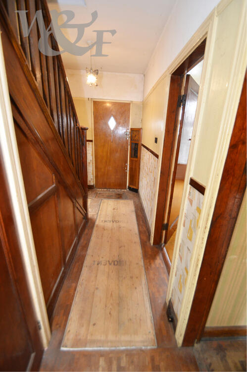 Benefits include two reception rooms, double height bay windows front and rear, kitchen, three bedrooms, first floor bathroom and separate WC, large widening rear garden with garage and storage sheds, shared rear vehicular access and much scope for improvement/development, subject to relevant permissions.