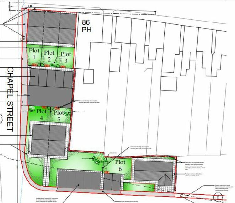 The site benefits from planning permission (Application 16/00088/FUL) to construct 5x 3 bedroom, three-storey townhouses and 1x 2 bedroom bungalow. The townhouses will comprise a lounge, kitchen diner, 3 bedrooms, bathroom and en-suite to master. The bungalow comprises a lounge/kitchen diner, 2 bedrooms and bathroom. Each plot will come with 2 x parking spaces.