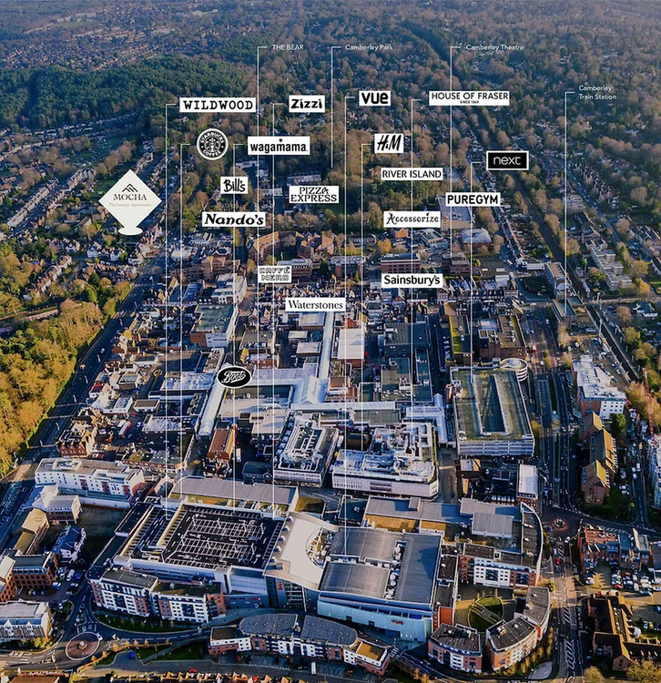 Located in the heart of Camberley town centre which offers an extensive range of shops, pubs, restaurants and railway station.
