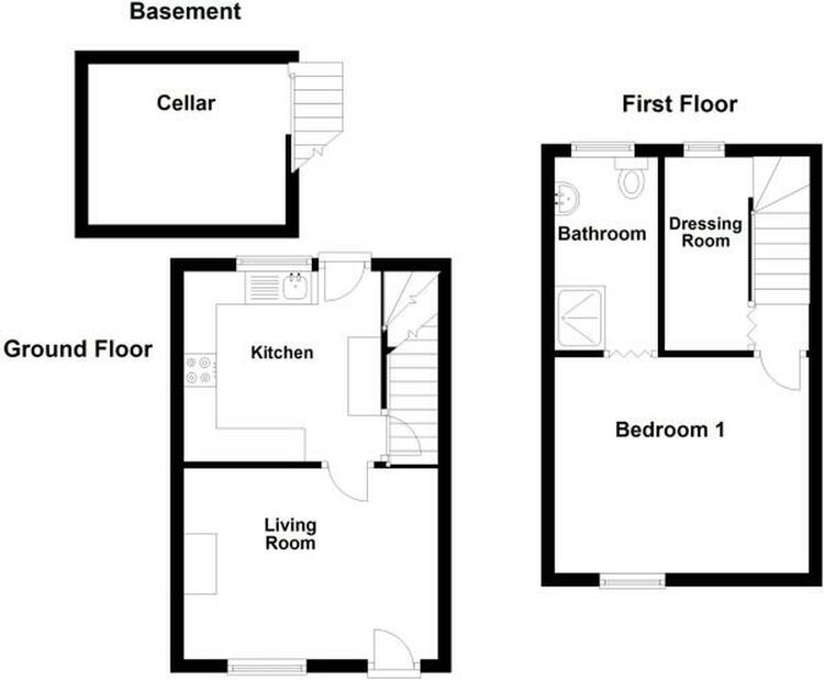 Fitted with a range of wall mounted units with matching base and drawer units, roll-edged worktops with a inset stainless steel sink with matching drainer and mixer tap over. A four ring gas hob with a oven/grille below a extractor over. Space and plumbing for a washing machine and under-counter fridge, tiled splashbacks, UPVC double glazed window to the rear with a matching rear door. A door leading to the cellar and stairs rising to first floor accommodation.