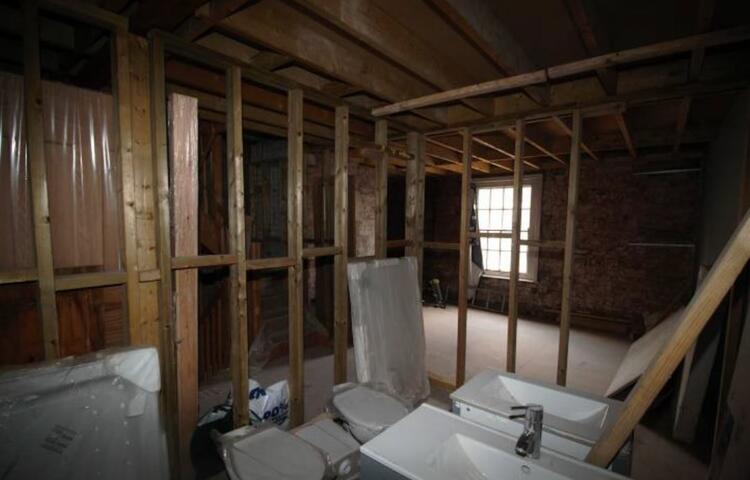 The two bedroomed flat is part completed and requires refurbishment including electrics, plastering, kitchen and bathrooms, etc. Significant preliminary works have been completed including new stairs, flooring, some stud partitioning. New water, gas and electricity supplies have been connected, pending installation of meters. The water supply is shared with the ground floor shop.