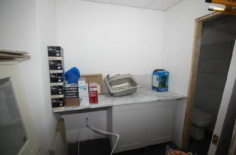 The shop has a glazed new frontage with glazed door and the retail area has been separated from the residential parts and is tiled with new wiring for service connections. There is also access to a cellar. The kitchen area and WC and lighting need to be completed and there are suspended ceilings in place in the retail area. Upon inspection on 07 07 23 works to the ground floor were nearly complete with minimal work required to have the premises in a lettable condition.