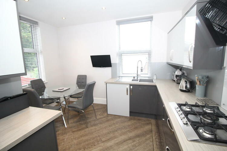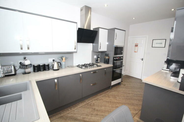 15ft 10 x 12ft 4 (4.83m x 3.76m) Fitted with a range of modern base and wall mounted cupboard/drawer units, worktops with panelling.<br>above, 1.5 basin sink unit, built in split level 5 ring gas hob with extractor hood above, electric double oven and microwave, integrated washing machine, refrigerator and freezer and a central heating radiator