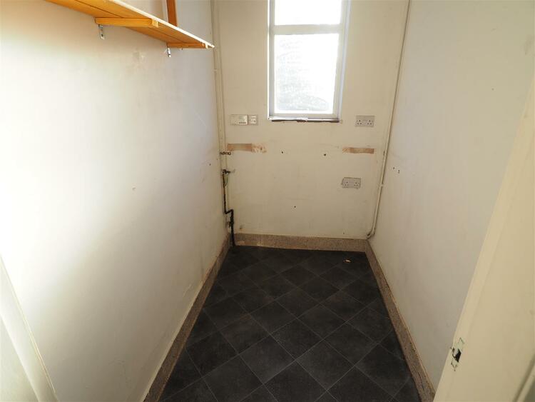 Fitted units, sink unit, work surfaces, appliance spaces, radiator, window, open to utility and door to the rear porch.