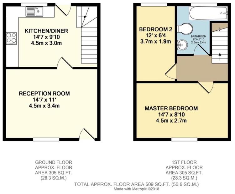 Open plan room to the front of the property. Laminate floor. uPVC double glazed window and door. Radiator.