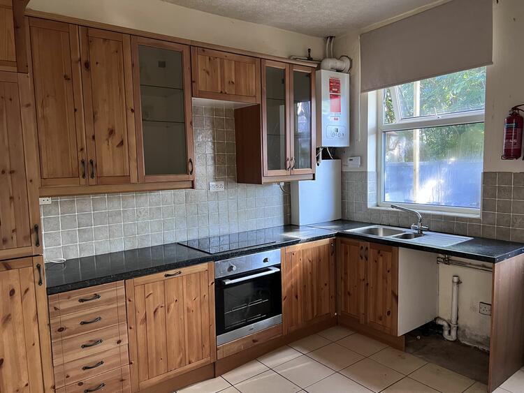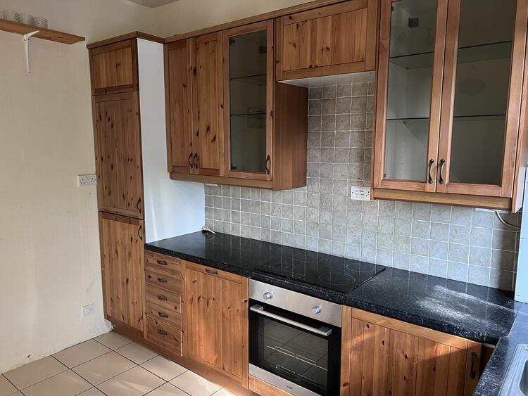 Range of matching fitted wall and base units. Built in oven and hob. Stainless steel sink. Plumbed for auto washer. uPVC double glazed window.