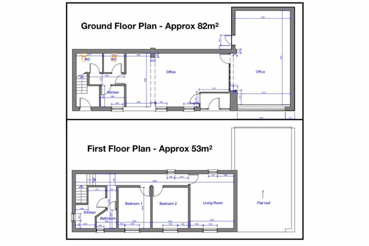 On the first floor, you have a two-bedroom 53m2 flat, which generates £750 per calendar month.