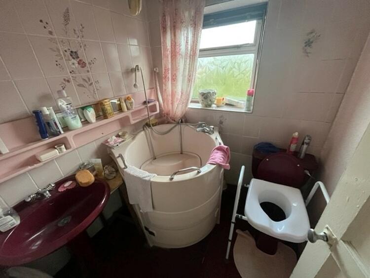 With low flush w.c. wash hand basin and walk in bath. Window to side aspect.