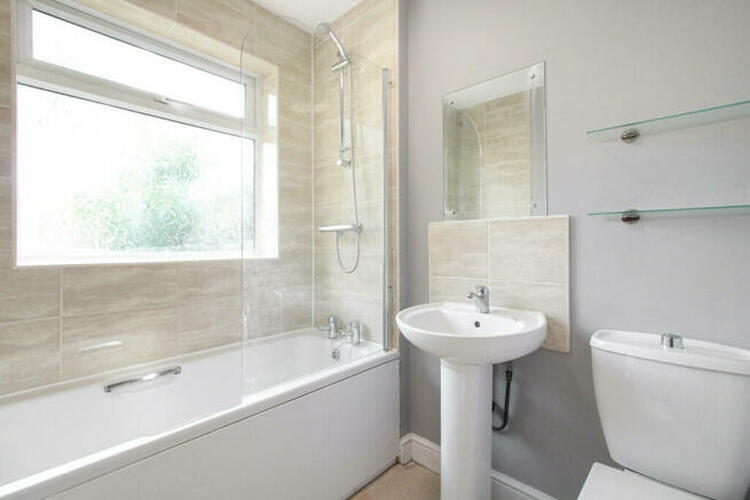 With a fitted suite comprising of a panelled bath with mixer shower over, low flush w.c. pedestal wash hand basin, chrome heated towel rail and window to the rear.