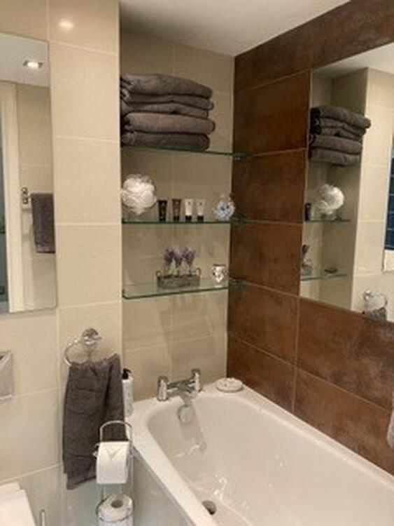 High spec bathroom, with mood lighting, bath and separate shower area.