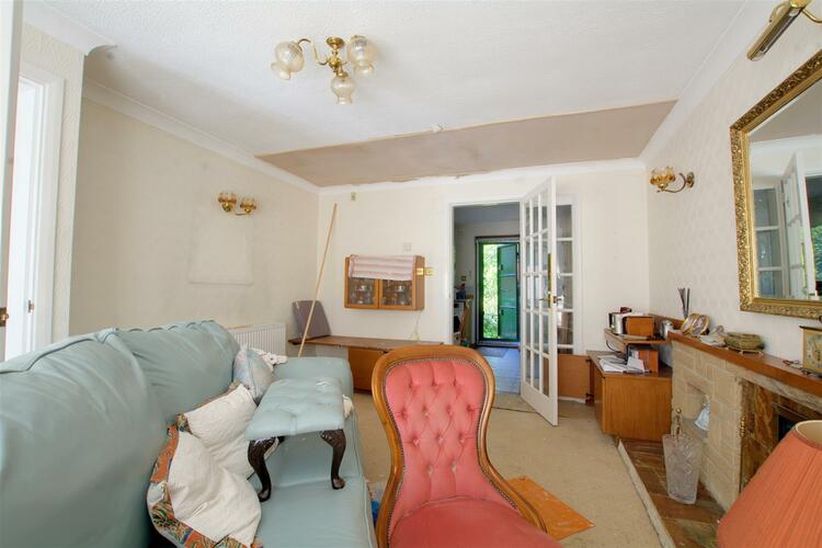 To the front is a lawned garden with mature shrubs and a driveway to the side of the property. To the rear garden there is a lawned garden with mature shrubs and paved seating area.
