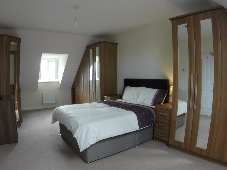 Having a range of fitted contemporary bedroom furniture comprising of wardrobes with hanging rails and storage shelves, inset mirrors and complimentary bedside cabinets. The room has a carpeted floor, two central heating radiators, a TV aerial point, ceiling light point and a feature sloping ceiling to the front and rear elevations of the property with a double glazed dormer window to the front elevation and a Velux window to the rear elevation.