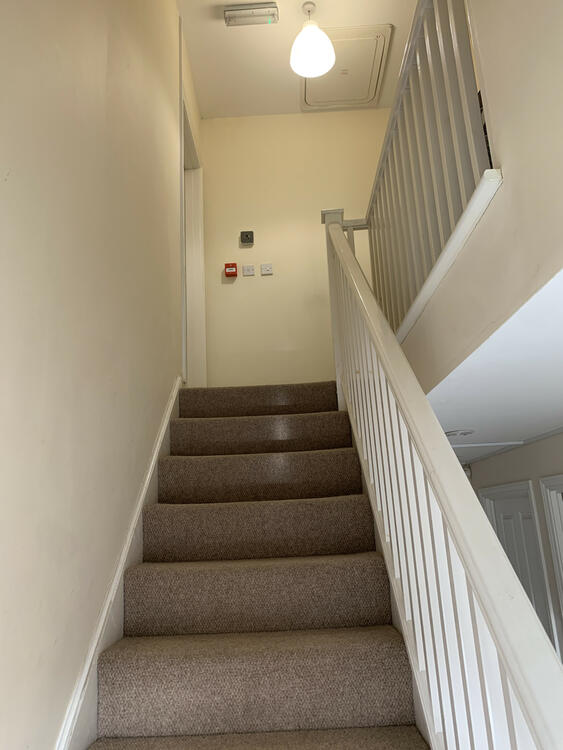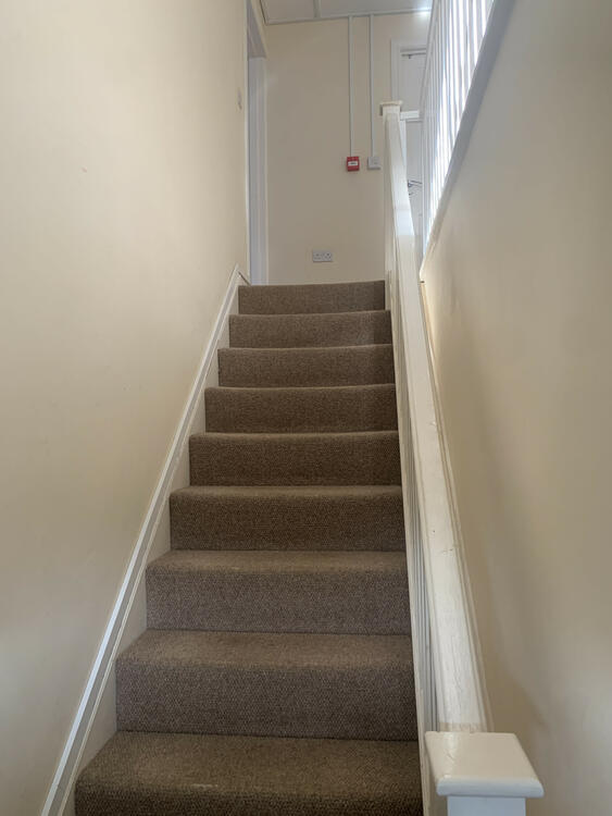 The entrance hallway has carpeted flooring, ceiling light point, radiator and stairs leading to the first floor landing.