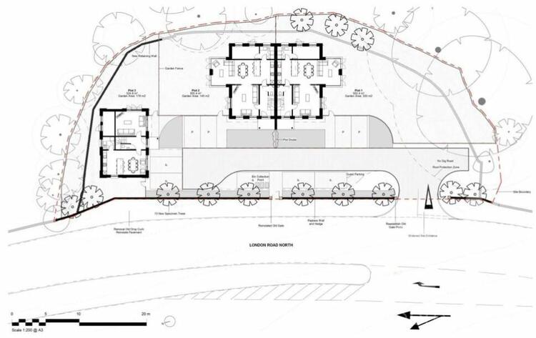 A Freehold building plot with planning permission Application No: 21/5509M Cheshire East Council Planning Dept for a 4 BEDROOM DETACHED HOUSE and a pair of 5 BEDROOM SEMI DETACHED HOMES within an approximately 0.36 acre plot on London Road North (between Vicarage Lane and Glastonbury Drive) backing onto a strip of woodland with picturesque Poynton Pool Beyond.