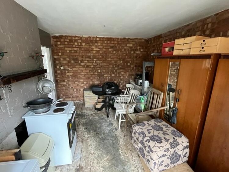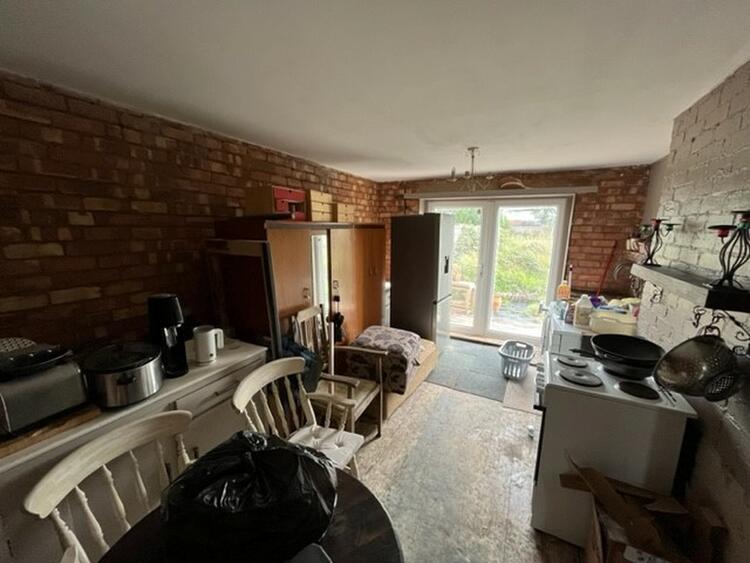 Am unfinished room which would make a great living kitchen, having windows to side and rear and door to side.