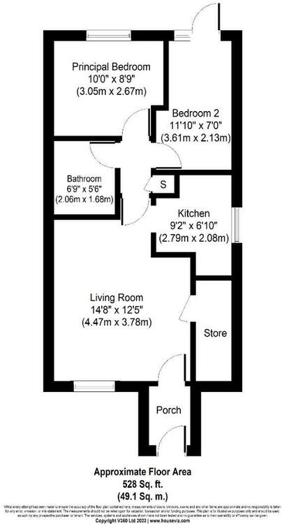Living Room - 4.47m x 3.78m (14ft 8 x 12ft 5)<br>Kitchen - 2.79m x 2.08m (9ft 2 x 6ft 10)<br>Bedroom 1 - 3.05m x 2.67m (10ft x 8ft 9)<br>Bedroom Two - 3.61m x 2.13m (11ft 10 x 7ft)<br>Bathroom - 2.06m 1.68m (6ft 9 x 5ft 6)