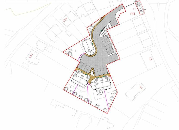 A freehold parcel of land with planning permission for 4 x three-bedroom houses and 1 x one-bedroom bungalow. The original public house building is located on St Peters Road and has a side entrance, which provides access to the development land at the rear.