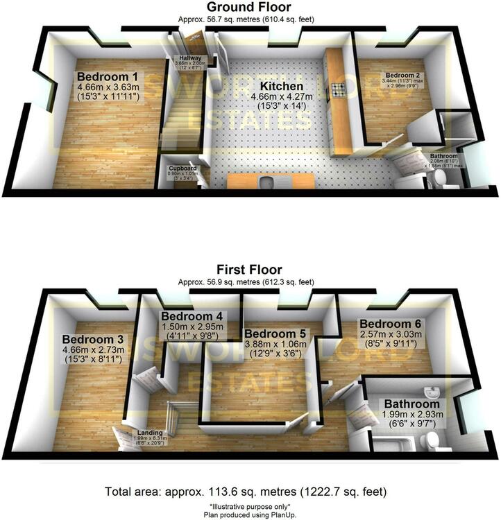 There is a further sixth bedroom but currently deemed too small to let.