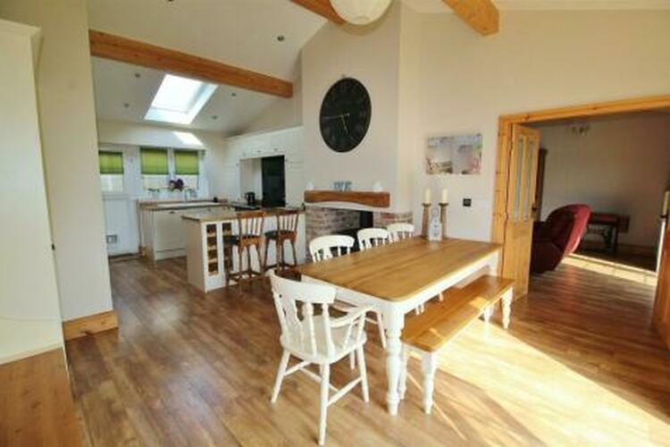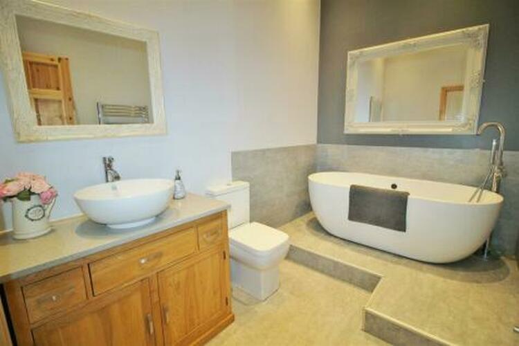 The property briefly comprises of entrance hallway with a coat and boot cupboard, kitchen diner with laundry room and pantry, lounge with open fireplace through to the kitchen with multifuel burner, master bedroom with dressing room and en-suite shower room, two further double bedrooms with wardrobes and en-suite shower rooms, double bedroom and family bathroom with oval free standing bath. The property also benefits from south facing front garden, water heating from solar panels, underfloor heating throughout powered by air source heat pump, uPVC triple glazing and gravelled driveway for two cars.