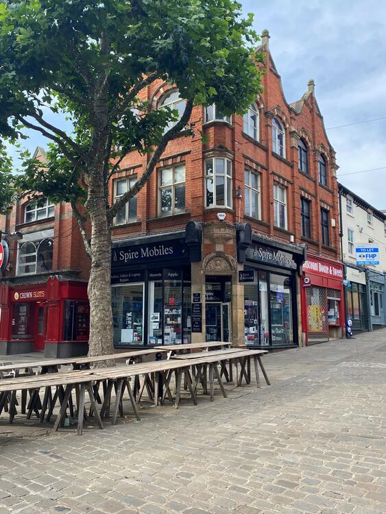 Let to Spire Mobiles on a 3-year lease granted in March 2019 (holding over). Rent: £14,000 per annum.