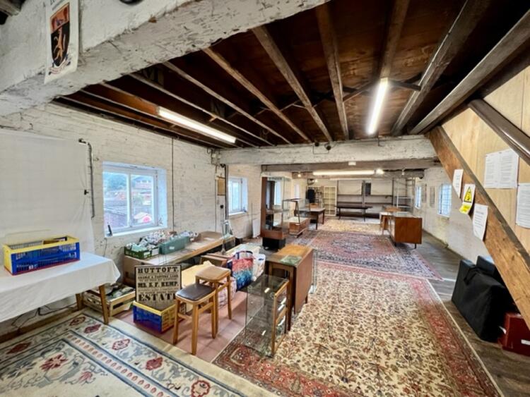With access via an external metal staircase and having attractive ceiling beams, exposed largely original floorboards, power and lighting and internal staircase leading to the second floor. Maximum length and minimum width measurements. 72ft 1 x 18ft 1 (22m x 5.54m)