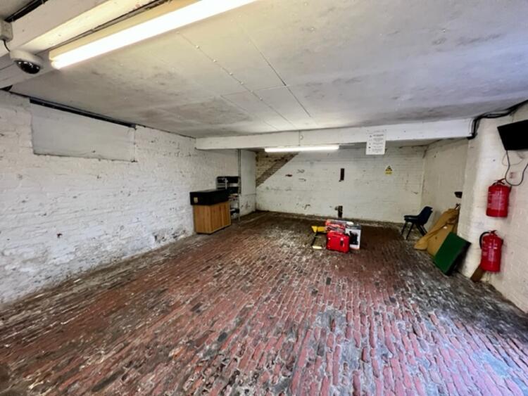 With brick and part York flag stones, boarded ceiling (possibly containing asbestos), power and lighting. Maximum length and minimum width measurements. 72ft 1 x 18ft 1 (22m x 5.52m)