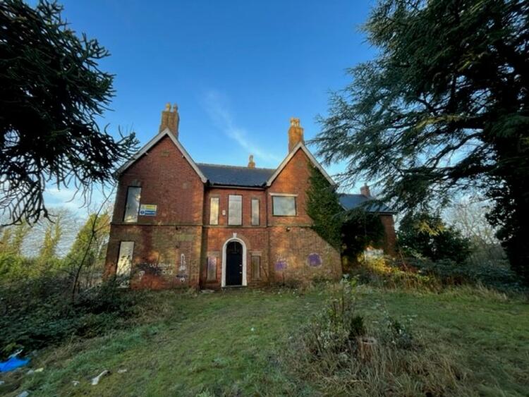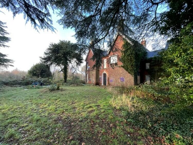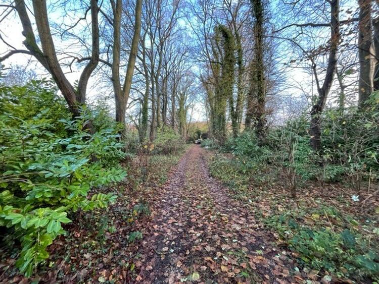 Driveway, 2.6 acres of woodland and gardens, dilapidated workshop/barn.