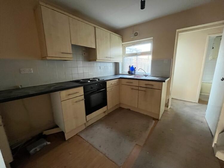 With modern base and wall units, built in oven, hob and extractor. Sink inset into work surfaces, space for appliances and window to rear aspect.