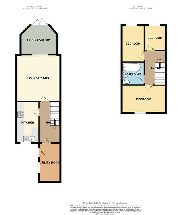 Small garden to front with gated path. Enclosed rear garden with patio and lawn.