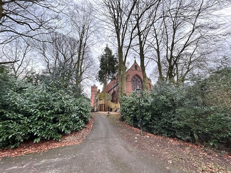 A standout feature of this development is the former tramway, now reimagined as the driveway to The Chapel. This pathway is framed by a pair of imposing brick and stone gateposts, a nod to the estates storied past and a grand entrance that sets the tone for the remarkable property that lies beyond. This transformation from a utilitarian tramway into a grand entranceway illustrates the thoughtful integration of the sites historical elements with its new purpose as a residential development.