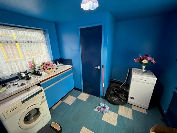 A basic range of base units with sink. Space for appliances, floor standing boiler, pantry cupboard, window to side and door to rear lobby.