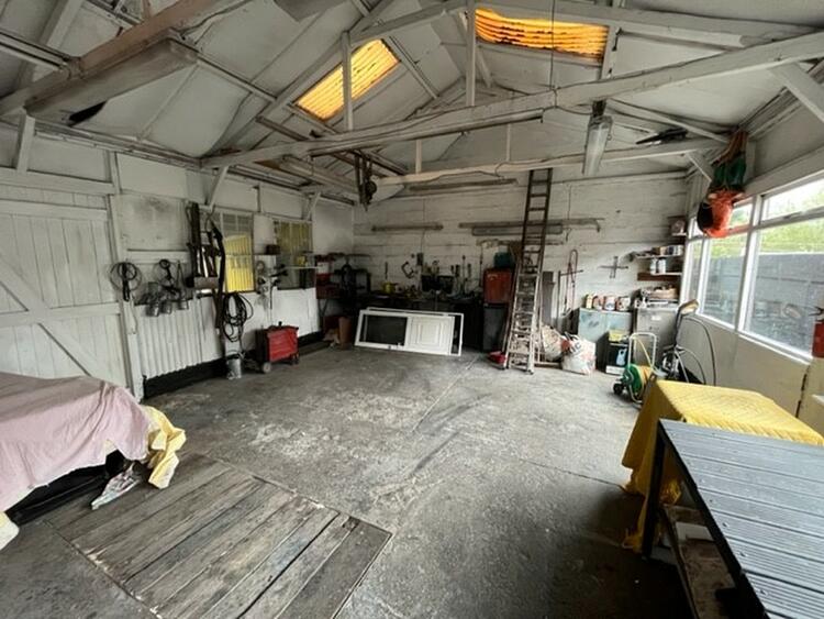 A four bedroom Dormer Bungalow with workshops and double garage.