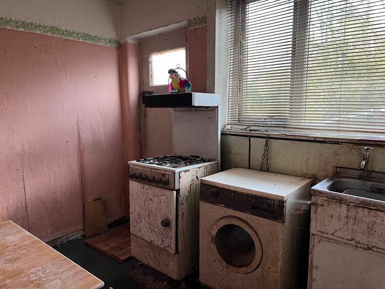 A basic kitchen in need of modernisation. Pantry. uPVC double glazed window.