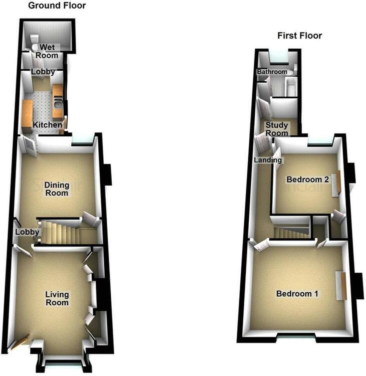 In brief the property comprises of a living room, dining room, kitchen, rear lobby with storage and shower room (potential for a utility room). The first floor benefits from landing, two double bedrooms, a study and bathroom. Outside, there is an enclosed garden to the rear.
