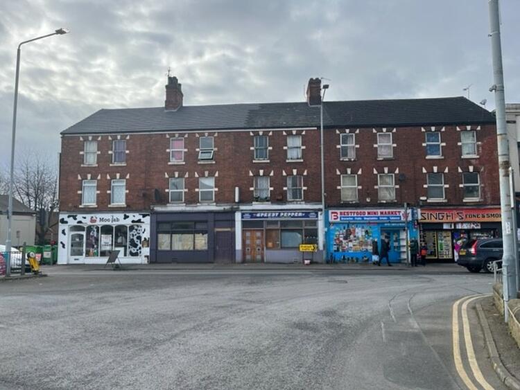 The site comprises of; 4-5 shops, 6 flats, advertising hoading and car park.