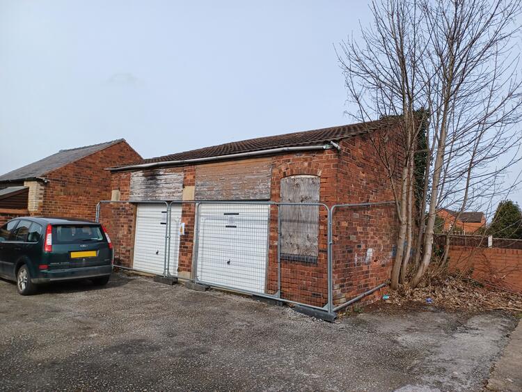 Two lock up garages, formerly an outhouse and located along King Street in Hodthorpe.