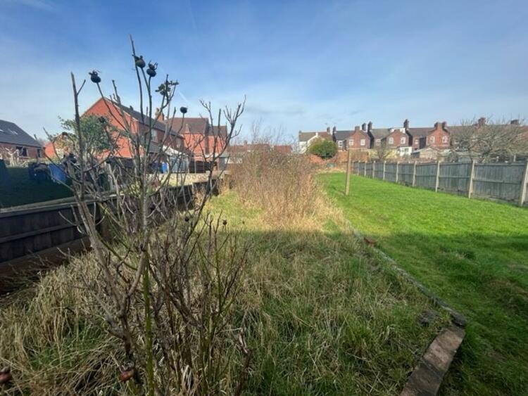 Walled garden to front with side access. Good size rear garden with patio, lawn and brick store.