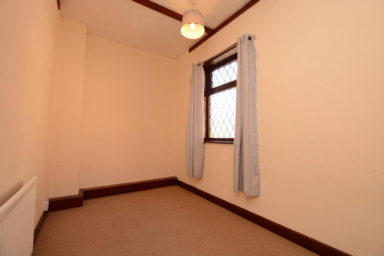 Double glazed window to rear aspect, single panelled radiator and a door to an over stairs storage cupboard.