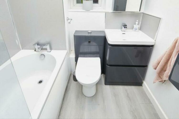 Refitted with a modern three piece suite comprising a concealed flush WC, wash hand basin in vanity unit and panel bath with shower over.