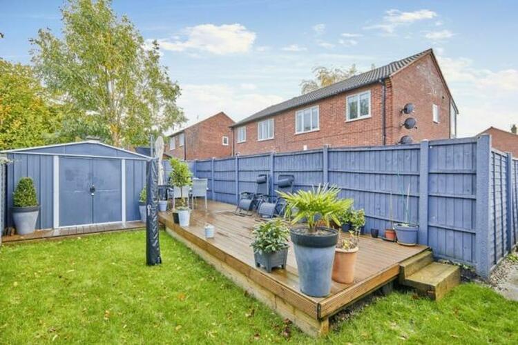 Driveway to the side offering ample parking. A private rear garden with lawn, decked seating area and steel shed. Enclosed by timber fencing.