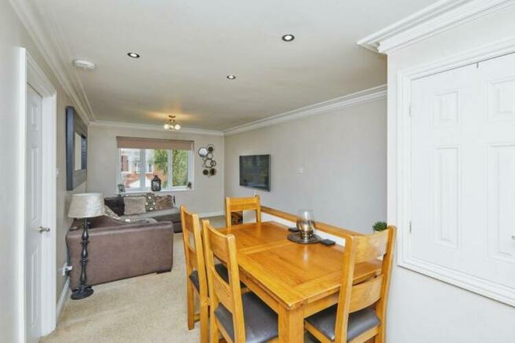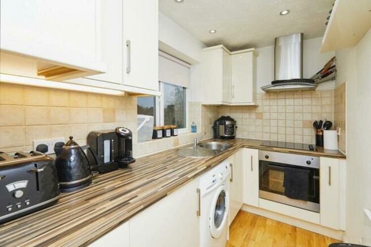 Well fitted with a range of modern wall and base units, work surfaces, sink and drainer, integrated oven and hob, space for washing machine and double glazed window to front aspect.