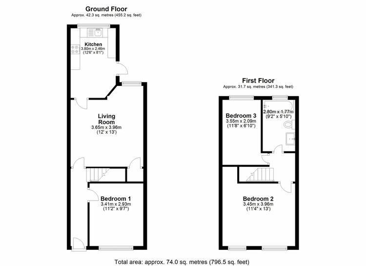 Landing, Bedroom Two, Bedroom Three, Communal Bathroom
