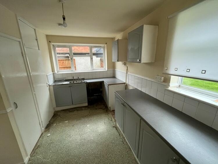 With a range of base and wall unis, sink, worktops, space for appliances, pantry cupboard housing the combi boiler. Windows to side and rear aspects.