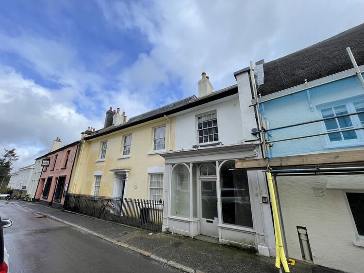 A two storey, mid-terrace commercial property in Chagford, Devon.