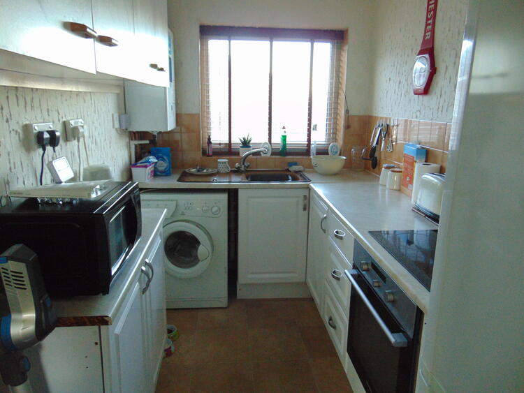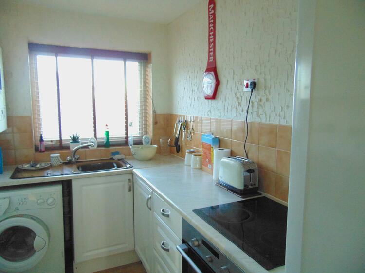 Fitted Range of Wall and Base Units with Roll Top Work Surfaces, Single Sink and Drainer Unit with Mixer Tap, Tiled Splashbacks, Plumbing for Washing Machine, Built in Electric Oven/Grill, Four Ring Electric Hob and Wall Mounted Baxi Combi Boiler.