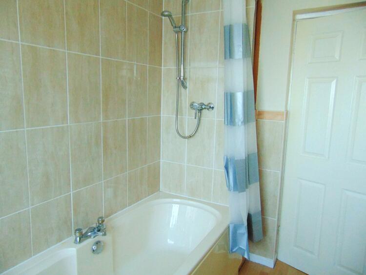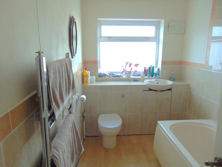 Mostly Tiled Walls, Bathroom Suite Comprising of Panelled Bath, T Bar Mixer Shower, Wall Mounted Wash Hand Basin, Low Level Close Coupled W/C and Towel Rail.